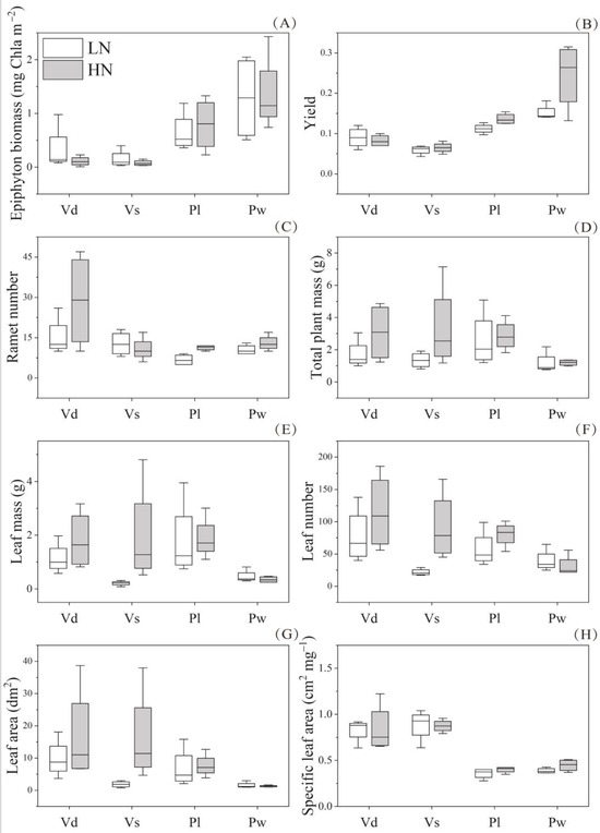- Zhao, S.; Yin, L.; Chang, F.; Olsen, S.; Søndergaard, M.; Jeppesen, E.; Li, W. Response of Vallisneria spinulosa (Hydrocharitaceae) to contrasting nitrogen loadings in controlled lake mesocosms. Hydrobiologia 2016, 766, 215–223. [Google Scholar] [CrossRef]