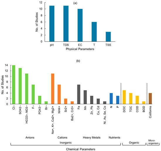 Enhancing the quality of groundwater resources is another primary objective of MAR. Generally, water provided to groundwater recharge facilities exhibits diverse physical, chemical, and biological properties [22]. Within groundwater recharge facilities, routine inspections carried out on recharged water concentrate on the physicochemical attributes of primary constituents, including nitrogen and phosphorus compounds, organic substances, heavy metals, bacteria, and radioactive molecules, etc. [27,28]. This approach ensures the provision of high-quality water (by limiting contaminants and pathogens) to replenish aquifers.