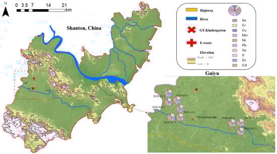 - Guo, Y.; Huang, C.; Zhang, H.; Dong, Q. Heavy metal contamination from electronic waste recycling at Guiyu, Southeastern China. J. Environ. Qual. 2009, 38, 1617–1626. [Google Scholar] [CrossRef] [PubMed]