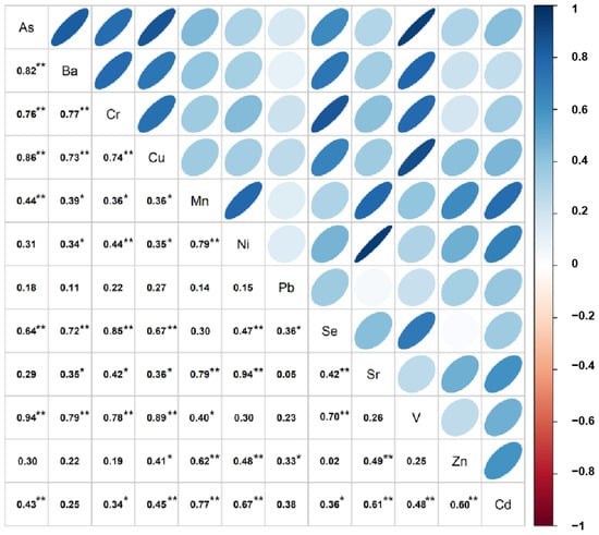 3.2. Heavy Metal(loid)s Distribution Pattern and Correlation Analysis