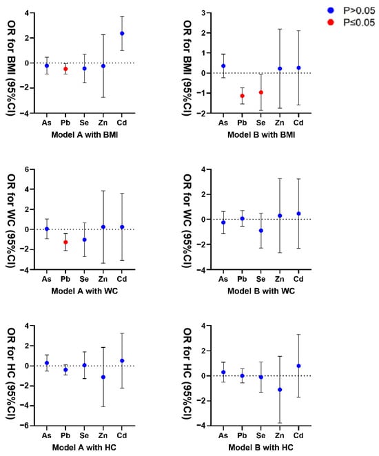 - Padilla, M.A.; Elobeid, M.; Ruden, D.M.; Allison, D.B. An examination of the association of selected toxic metals with total and central obesity indices: NHANES 99-02. Int. J. Environ. Res. Public Health 2010, 7, 3332–3347. [Google Scholar] [CrossRef]