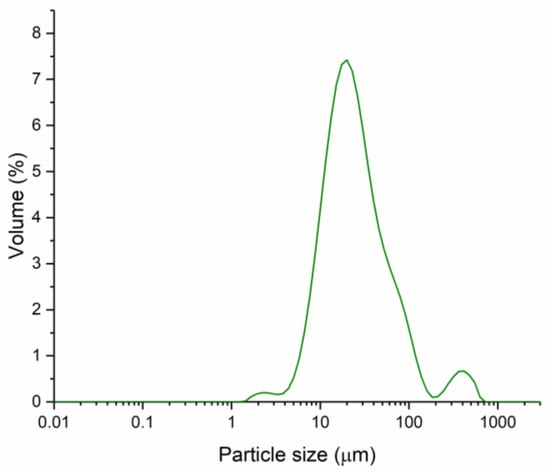 Laser diffraction spectroscopy (LDS) was used in a Mastersizer 2000 (Malvern Instruments, Malvern, UK) and a Hydro 2000 module to assess the size distribution of MPs. The device’s pump was set to 1500 rpm. MP samples were introduced into the dispersion unit until the obscuration level reached 7–8%, ensuring an optimal signal-to-noise ratio. Laser Diffraction Spectroscopy is a technique widely used for micrometric particles characterization, including plastic particles [33]. Data analysis was conducted using the Mastersizer 2000 software, applying the Mie Theory, to obtain the particle size distribution from the scattering.pattern. The particle size is reported as the volume-equivalent sphere diameter.