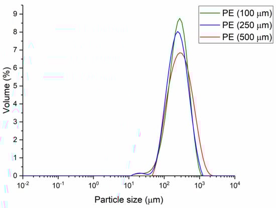 PE particle size distribution obtained by LDS for the three PE batches evaluated.