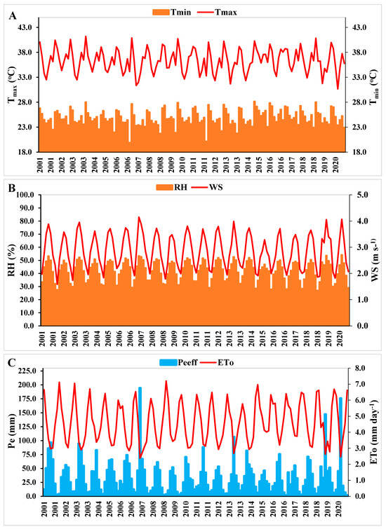 3.1. The Spatiotemporal Changes in Climate Variables (2001–2020)