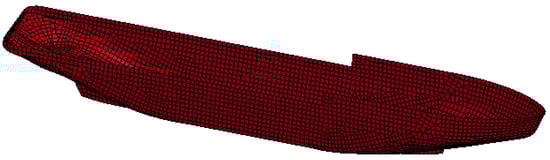 This article takes the “Xue long 2” icebreaker as the research object, and its bow is designed in a spoon shape, which has excellent icebreaking performance. In this numerical simulation, shell elements were used as the grid elements of the ship, ignoring the deformation caused by collisions between the ship and ice layers, simplifying the ship structure, and preserving the outer shell of the ship. The main parameters of the icebreaker are shown in Table 1, and the numerical model of the icebreaker is shown in Figure 4.