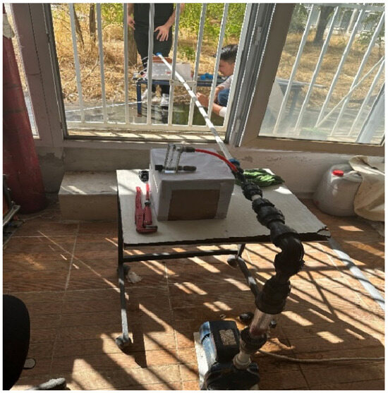The method followed in this study is as follows: The experimental measurements primarily focused on determining the jet exit length based on different jet exit diameters, different main pipe flow rates, and air suction flow rates, depending on whether the system includes a Venturi or not. For the experimental measurements, the nozzle diameter was selected as d0 = 5.5–7.5 mm; the main pipe flow rate as Qs = 17–27.8 × 10−5 m3/s, and Qa = 1.25–4.6 × 10−5 m3/s. Tap water was used in the measurements conducted for this study. Efforts were made to keep the working temperature stable at approximately 20 °C. Care was taken to ensure that the main flow pipe used in the experimental setup was horizontally balanced (Figure 6).