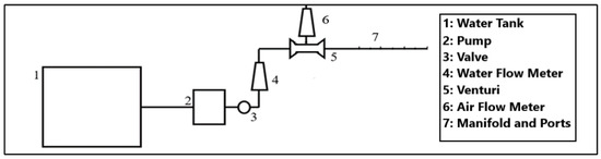 Test setup (pump, water flow meter, air-flow meter, Venturi device, and manifold).