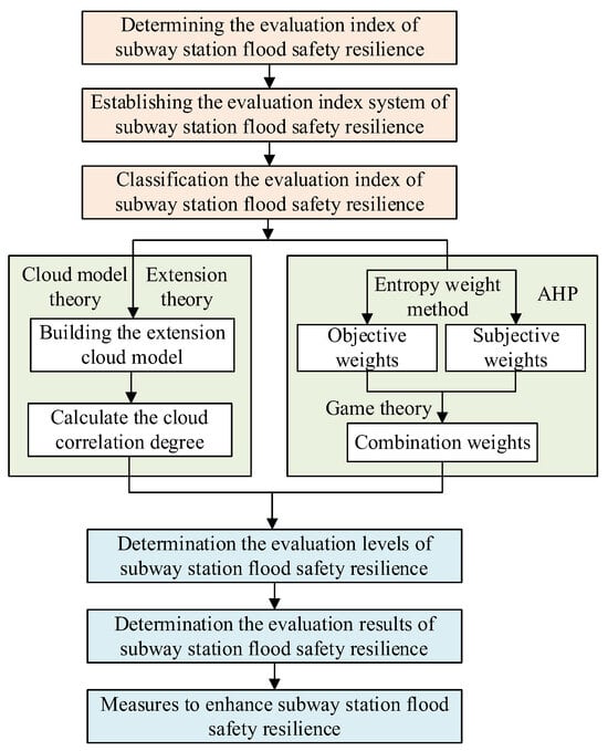 Evaluation process of the new model for evaluation flood safety resilience of subway stations.