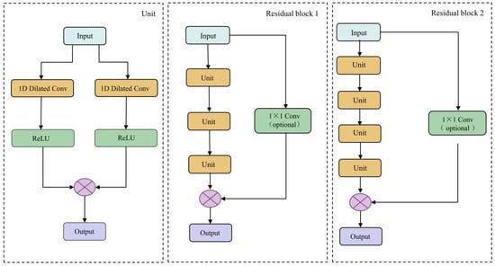 Dilated convolution introduces a dilation factor d to increase the spacing between the weights of the convolutional kernel, thereby expanding the receptive field of the convolutional layer and capturing long-term dependencies. The operation of dilated convolution can be represented as [29]:
