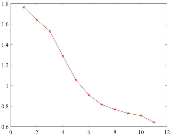 Figure 13 shows the trend of decreasing permutation entropy from IMF1 to IMF11 components, with the horizontal axis (1–11) representing each corresponding component. It can be observed that there is a significant difference in permutation entropy values among the components. The permutation entropy value of IMF1 reaches nearly 1.8, while that of IMF11 is just above 0.6, indicating a notable difference in complexity across the components. The decrease in permutation entropy suggests that the transition from high-frequency to low-frequency components involves a shift from higher randomness and complexity to lower levels. Therefore, we set a threshold of 1 for permutation entropy values, categorizing sequences with values greater than 1 as high-frequency and those with values less than or equal to 1 as low-frequency. The GRU model is applied to the high-frequency sequences, while the TCN–Transformer model is used for the low-frequency sequences to further predict the components.