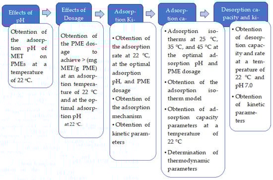 Analyses of the effects of pH, PME dosage and temperature on adsorption were performed, as were assays to determine the adsorption capacity and rate of metformin, the latter using isotherms and adsorption kinetics, respectively. All the assays were performed in batches using an orbital shaker table (SoLab-223) maintained at a constant speed of 100 rpm and a temperature of 22 °C ± 1 °C in an acclimatized chamber. When necessary, the pH of each solution was adjusted with 0.1 M hydrochloric acid (HCl) or sodium hydroxide (NAOH).