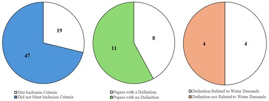Of the 66 papers that were reviewed, 19 met the inclusion criteria and provided a reasonable analysis of reliable water supply. We used the same method for each of the 19 documents to summarize the various concepts discussed. We first acquired information from the studies and cataloged what they deemed to be relevant factors of a reliable water supply. This was performed by identifying any explicit definitions of a reliable water supply and what components of the water system were considered in that metric. The definitions in the papers were further compared with our definition for solidification of the three components we proposed to use in defining a reliable water supply.