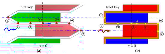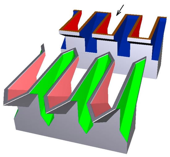 Cicero et al. [8] performed both physical and numerical studies to examine the effect of trapezoidal key planform with slightly sloping sidewalls on discharge capacity. It was found that, if the inlet key is wider than the outlet one, the trapezoidal shape was more efficient than the rectangular one, and the gain in discharge was greater than 5%. In their experiments, Shen and Oertel [9] compared non-symmetrical trapezoidal and rectangular PKWs with varied ratios of key widths. They found that the overall discharge capacity was improved by up to 8%, which was due to the incorporation of a rectangular inlet section into the trapezoidal planform. This combination might have potential for further enhancement of hydraulic efficiency. By means of physical and numerical modeling, Mishra et al. [10] examined the effect of the non-linear slope profile of outlet keys on discharge efficiency. The longitudinal ogee floor profile was found to be more efficient than the linear counterpart, with a maximum increase in discharge of 9%. However, this was only valid for large water heads.