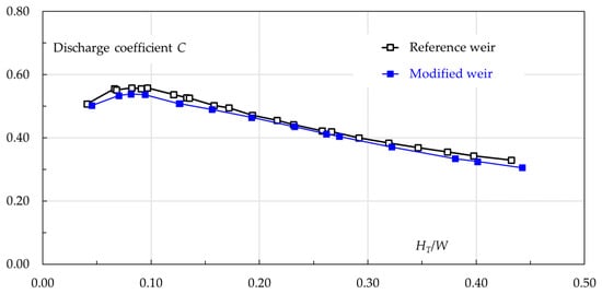 Discharges over one weir unit (Q)—comparison between the reference and modified weirs.
