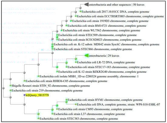BLAST analysis confirmed that isolate N6 belongs to the genus Escherichia, showing 100% homology with Escherichia coli (E. coli) (Table 3). Phylogenetic analysis (Figure 2) revealed a close resemblance of the species to the genus Shigella (99.81%) and Streptomyces (99.60%). However, the isolate formed a distinct outgroup, indicating that the species is phylogenetically different from the sequences identified through BLAST analysis (Figure S1).