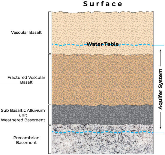 Geological cross-section of an aquifer system in the Wadi Al-Hamd Basin (modified after [25]).