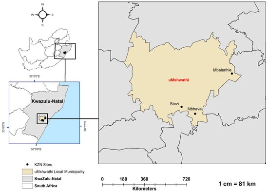The study area shows three localities (Stezi, Mbhava, and Mbalenhle).