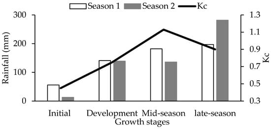 Seasonal rainfall distribution according to growth stages for season 1 (2022/23) and season 2 (2023/24).