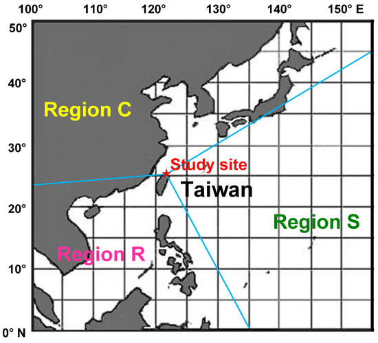 According to Chen and Chen [3], pollution sources are classified into three potential regions (as shown in Figure 1): (1) Region C: the continent region under the northeast monsoon system, including mainland China and the Japanese archipelago; (2) Region R: the Southeast region under the southwest monsoon system, including the Philippines and the Indochina Peninsula; and (3) Region S: the sea region under the western Pacific high-pressure system.