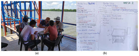 Thus, with the purpose of assertively guiding a participatory process, and in connection with the project’s objectives, a methodological strategy for working with the communities was developed, under the modality of community worktables to promote participation, community receptivity, knowledge dialogue, and engagement with the stilt house communities during the development of the project. This methodological strategy comprised three phases: (1) a community concertation and validation activity, (2) the execution of what was concerted and validated, (3) the transfer of scientific knowledge.