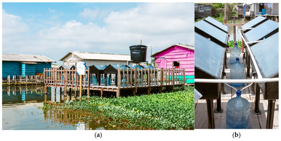 Based on this, the objective of this work was to evaluate innovative and cost-effective solutions to produce drinking water for the stilt house communities of the CGSM, with the potential to impact people’s health and, consequently, their quality of life. The proposed solutions combine traditional systems with renewable energies, such as solar power, while also incorporating traditional knowledge and community water management to solve potable water supply problems. This approach recognizes the crucial role of bottom-up contributions in ensuring the sustainability of initiatives and maintaining water security for these villages located within the CGSM.
