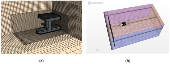 To ensure simulation accuracy, an overlapping grid method was employed for the simulation of the ship’s motion. The ship and a portion of the surrounding fluid domain were meshed separately, with the ship and its immediate area designated as the overlapping region. Under the condition of releasing certain degrees of freedom (heave and pitch), the overlapping region was allowed to move within the scope of the background domain. Data exchange between the overlapping and background grids was facilitated through interpolation, thereby obtaining flow field information across the entire fluid domain.