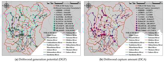 4.3. Driftwood Generation Potential (DGP) and Driftwood Capture Amount (DCA)