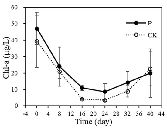 Changes in the chlorophyll a in aquaculture ponds (Chl-a: chlorophyll a; P: plant group; and CK: control group).