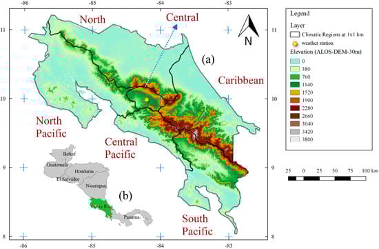 - Waylen, P.R.; Quesada, M.E.; Caviedes, C.N. Temporal and spatial variability of annual precipitation in Costa Rica and the southern oscillation. Int. J. Climatol. 1996, 16, 173–193. [Google Scholar] [CrossRef]