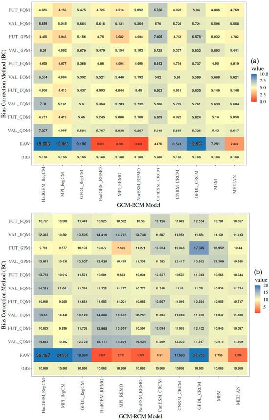 3.1. Performance of Bias Correction Methods