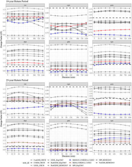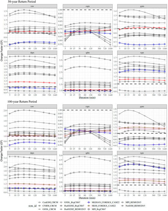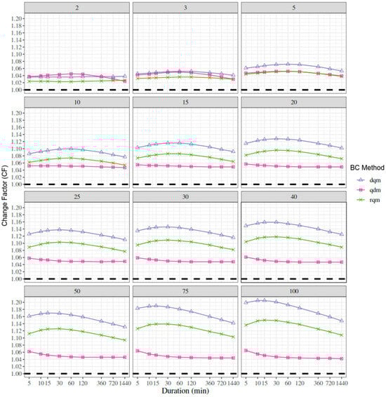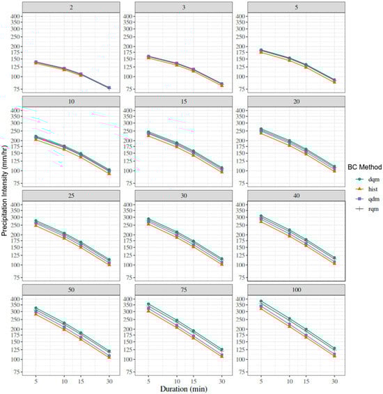 3.4. Changes in Projected IDF Curves