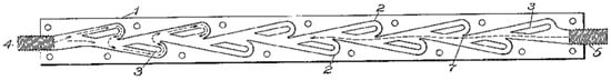 The cross-section of a Tesla valve, displaying its cavity design, from the original patent application (link).