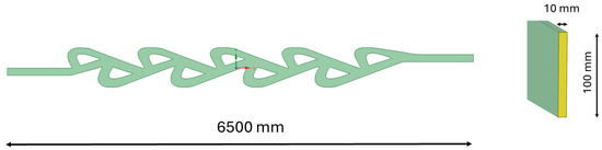 The geometry creations and fluid simulations were performed using the ANSYS 2023 R1 software and its modules. The geometry is based on a three-dimensional model that is freely available from grabcad.com. This geometry was cleaned, and all unnecessary parts were cut off using SpaceClaim to create the flow domain. It was scaled to have a height of 100 mm at the straight pipe section, and its width was set to contain only one cell to generate geometry for the two-dimensional simulations, as seen in Figure 3.