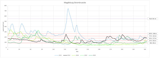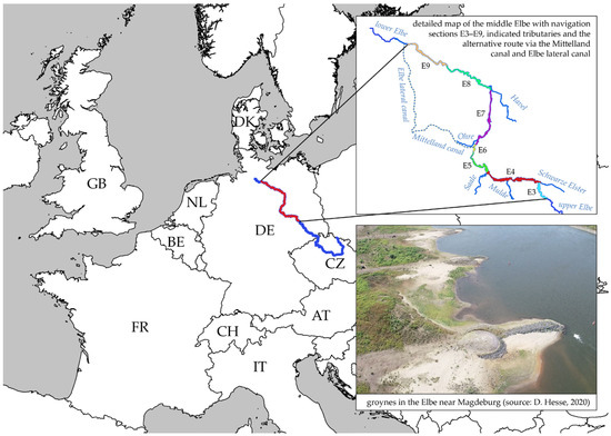 - WSV. The Elbe. Available online: https://www.gdws.wsv.bund.de/DE/wasserstrassen/01_bundeswasserstrassen/07_Elbe-Oder/Elbe.html?nn=1214418 (accessed on 6 September 2024). (In German).