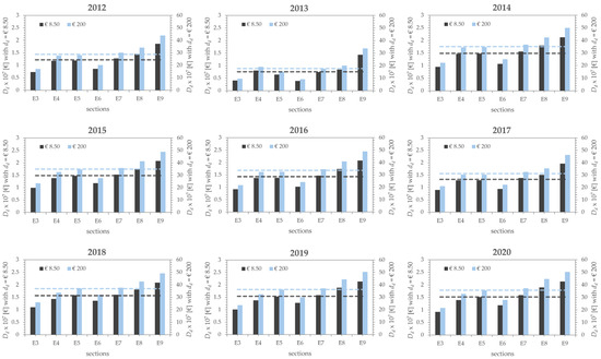 - Damage costs Dd,sec,year or replacement costs Dr,sec,year per year (EUR/a).