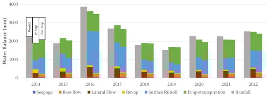 - Pandi, D.; Kothandaraman, S.; Kuppusamy, M. Simulation of Water Balance Components Using SWAT Model at Sub Catchment Level. Sustainability 2023, 15, 1438. [Google Scholar] [CrossRef]