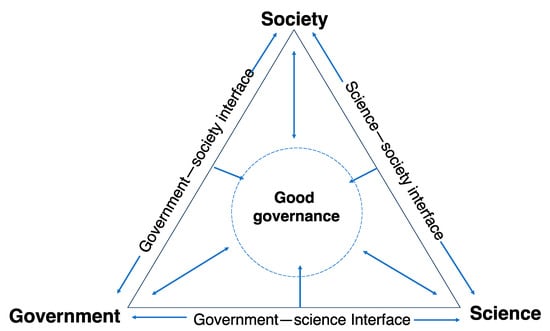 The trialogue model of governance offers a simple conceptual framework to guide discussions on existing governance processes and structures [32], and is composed of three main actor clusters [31] (Figure 1):