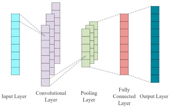 The CNN mainly consists of convolutional layers and pooling layers. The convolutional layer is responsible for extracting parameter features of the input sequence, which are then passed to the pooling layer, and finally, the results are obtained through the fully connected layer. Figure 2 illustrates the structure of the CNN.