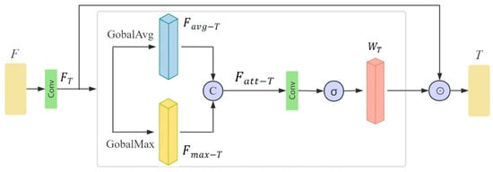 where represents the output from the previous time step; denotes convolutional operations; and are global average pooling and global max pooling operations on features in the channel dimension; denotes feature concatenation; is the sigmoid function; is the weight vector of TAM; denotes the output of TAM; and represents element-wise multiplication.