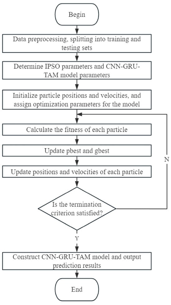Algorithm flow of the IPSO-CNN-GRU-TAM model.