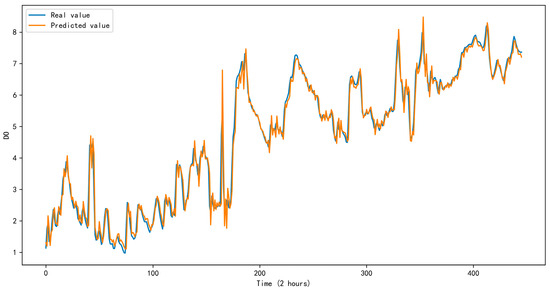 According to the calculated results, the feature importance ranking of each factor is as follows: DO saturation, pH value, temperature, and conductivity, as shown in Table 1. This study selected environmental factors with elevated and significant linear correlations, namely, the DO content with DO saturation, pH, and temperature, as input samples for the DO prediction model to reduce data dimensionality and complexity, thereby improving model prediction performance.
