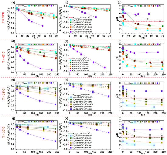 - The main parameters affecting the decomposition rate of S2O82− were closely related to TOC, Ni, and Mo concentrations, particularly at higher concentrations (c0(S2O82−) = 16.1 g∙L⁻1) and temperatures between 30 °C and 50 °C. Additionally, at a lower concentration (c0(S2O82−) = 2.7 g∙L⁻1) and a temperature of 40 °C, the decomposition rate was more strongly associated with Co and Mn.