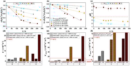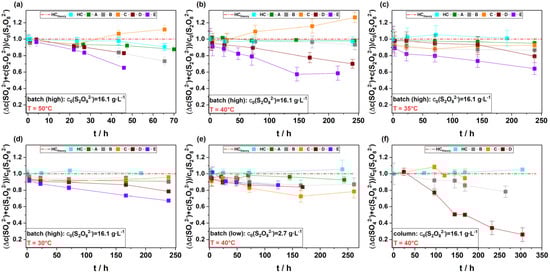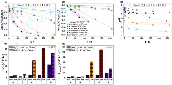 - While batch tests yielded higher S2O82− decomposition rates normalized to the total BET surfaces, dynamic column tests revealed that limited reactive surface accessibility and the formation of preferential flow paths may reduce the reliability of this setup in representing in situ conditions. Therefore, using batch or static stop–flow column tests may be more suitable for the evaluation of S2O82− persistence during bench-scale treatability tests;