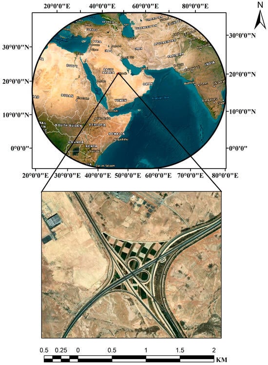 The first step for this study was identifying the specific study area where the landscape plants are located. Further, ensuring that diverse plant species are represented. Hence, the intersection of King Salman Road and Airport Road was chosen for this study as shown in Figure 1, in which ten different familiar landscape plants are included. This area is considered one of the first expansions of the Green Riyadh initiative that has been implemented, covering an approximate area of 627,000 m2. Riyadh is regarded as the primary scene reflecting Saudi Vision 2030, since large projects target 49% of its territory, with the Qiddiya project located on its southwestern border, which is one of the most popular tourist spots in the Kingdom. In addition, the King Salman Park project in the heart of Riyadh, when completed, will be the world’s largest city park, covering an area of more than 16 km2.