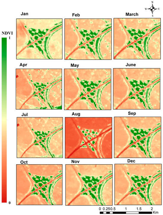NDVI estimated based on Landsat 8 satellite images and ArcMap software over 12 months.