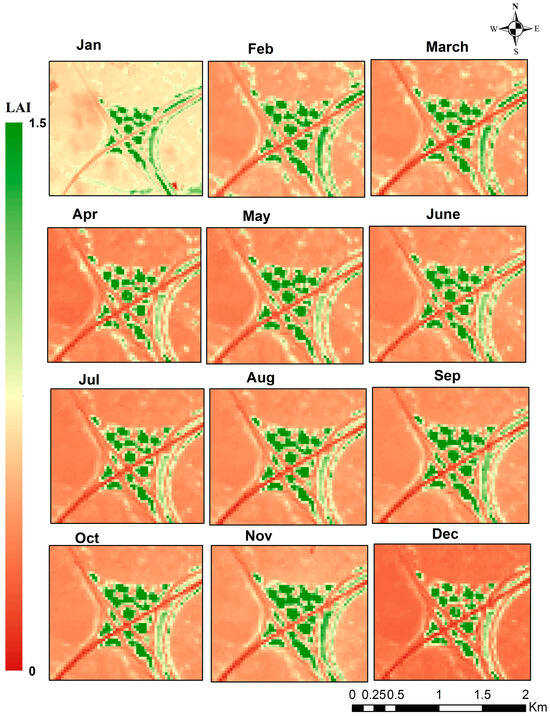 LAI estimated based on Landsat 8 satellite images and ArcMap software over 12 months.