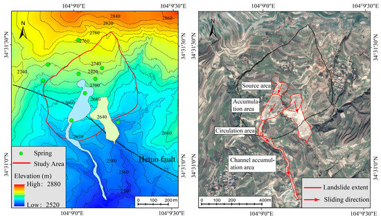 Min County is located at the northeastern edge of the Tibetan Plateau, serving as a transitional zone between the Gannan Plateau, the Longxi Loess Plateau, and the Longnan Mountains. The region has a complex geological structure and undulating terrain [24]. Yongguang Village, located in the northern part of Min County, lies on the northeastern edge of the Tibetan Plateau and is influenced by multiple major active faults, resulting in significant tectonic activity. The surface trace of the Hetuo Fault crosses through Yongguang Village (Figure 1), causing surface fragmentation and severe soil erosion in the area.
