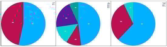 A total of 39 men and 34 women participated in the research. In terms of age, the biggest group was between 18 and 25 years old (47.9%), while the second largest age group was between 46 and 55 years old (20.5%). Regarding education level, the majority (60.3%) hold a bachelor’s degree (level 6), while 30.1% also hold a master’s degree (level 7). Additionally, the vast majority (60.3%) are graduates of Fisheries and Aquaculture departments, followed by Agriculture departments (15.1%). In total, 58.9% stated that they specialize in ichthyology (Table 2 and Figure 1).