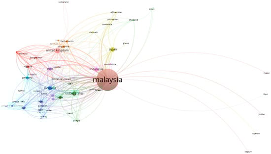 Malaysia’s flood management strategy aims to reduce flood risks and impacts by coordinating efforts among communities, government agencies, and stakeholders. Malaysia’s position and climate make it vulnerable to floods. Recent notable floods include the East Coast floods in 2014–2015, which caused damage of MYR 2.6 billion (USD 630 million), the 2020–2021 East Coast floods, which caused damage of MYR 1.1 billion (USD 260 million), and the Kuala Lumpur floods in 2022, which caused extensive disruption and destruction. Malaysia intends to improve its capacity to control floods via community involvement, legislative measures, and infrastructure development. Based on the literature review on flood management in Malaysia, researchers are focused on different keywords like flood management, flood hazard, flash flood, and urban flood (Figure 3). Researchers in Malaysia and other countries have examined flood management issues (Figure 4). In this current survey, 17 NbS articles on flood management were studied, and detailed implementation strategies were added to find the best solutions for flood management in Malaysia (Table 1, Table 2, Table 3 and Table 4).