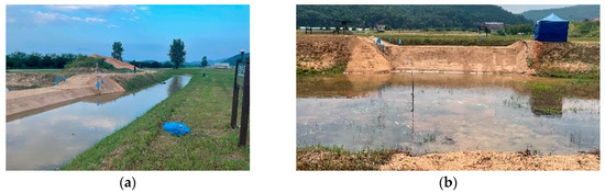 River levees are crucial structures that protect human life and property from flooding and significantly affect river environments and aquatic ecosystems. Levee failure can cause significant direct socioeconomic damage to protected lowland areas. The importance of levee management has increased considerably owing to the continued existence of levees that were built during a time of insufficient engineering knowledge. The major causes of levee failure include overtopping, seepage, embankment instability, and structural issues. Seepage and overtopping are the primary causes of at least 70% of observed levee failures [1,2,3]. In the mechanism of levee failure caused by seepage, an increase in the hydraulic head between the protected lowland and waterside land causes an increase in the pore pressure within the levee and a decrease in the shear strength of the soil, potentially resulting in levee failure [4]. In particular, if seepage intensifies within the levee, it can cause internal erosion, which includes concentrated leak erosion, backward erosion, suffusion, and contact erosion, which can ultimately result in levee failure [5,6,7]. The mechanism of levee failure due to overtopping involves the localized failure of the embankment slope because of the weakening of the soil particles of the levee caused by rainfall erosion. This is followed by the gradual development of scour and erosion along the failure plane, which is caused by the formation of flow jets within the levee. The levee crest collapses as the failure progresses, leading to an increase in flow through the failed section and the expansion of the failure plane [8,9].